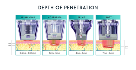 Morpheus8 nastavak sastoji se mikro iglica koje prodiru do dubine od 4mm, a koristi se za čitavo lice i vrat. Radi li se o tretiranju bora, pomlađivanju kože ili uklanjanju ožiljaka od akni, ovaj nastavak je primarno rješenje Morpheus8 tretmana.